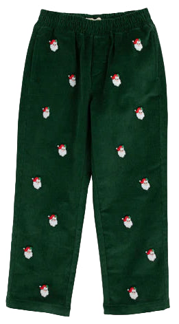 CRITTER SHEFFIELD PANTS ( CORDUROY ) GRIER GREEN WITH NANTUCKET NAVY STORK AND SANTA EMBROIDERY